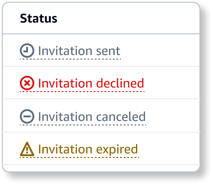 图 1: Amazon 账单与成本管理 控制台中显示的邀请状态。