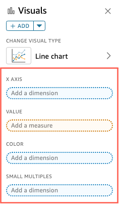 You can't use the same field for more than one dimension field well or drop target on a visual. For more information about how expected field type is indicated by field wells and drop targets, see Using visual field controls.